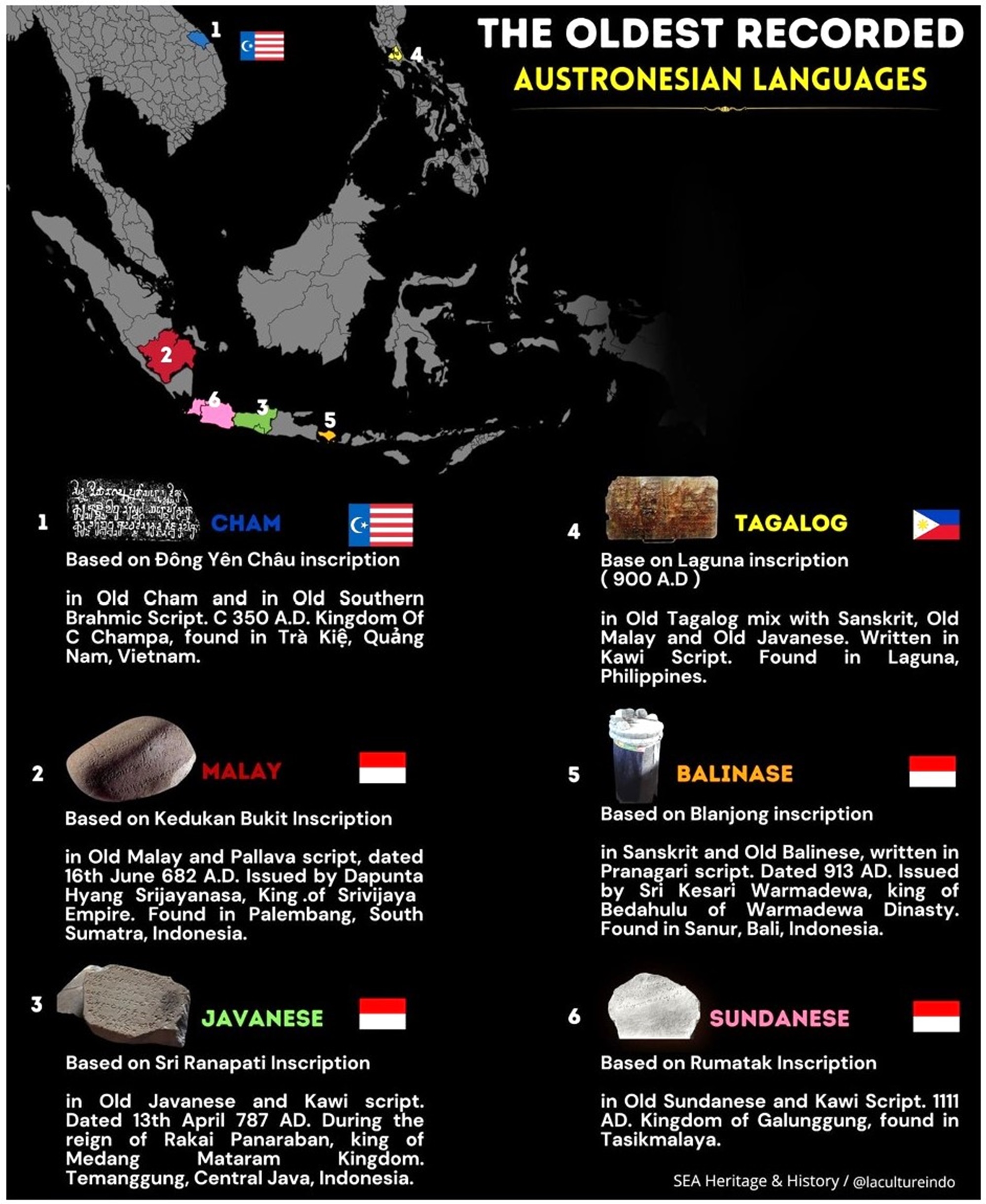 Indonesia: Chữ khắc Kedukan Bukit - Đế quốc Srivijaya (Thế kỷ 7).