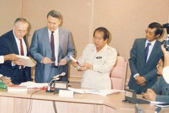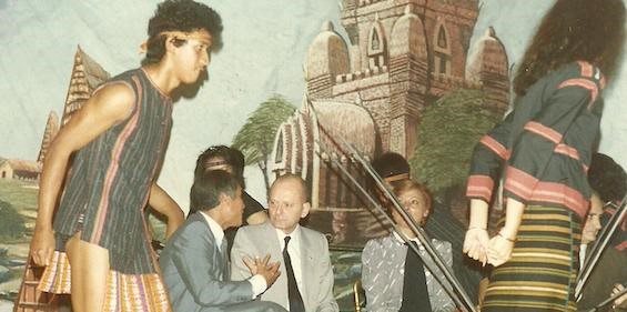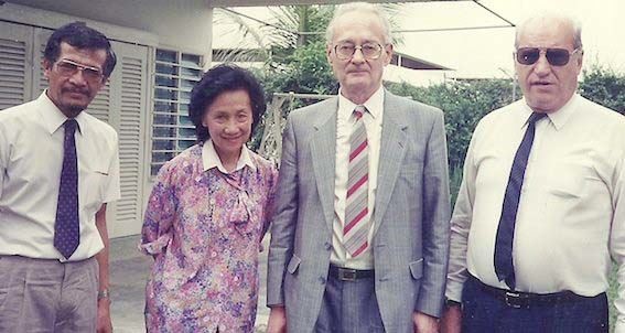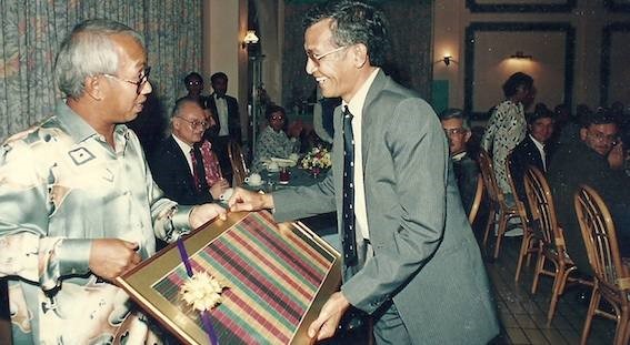 Hình 9. Lễ nhậm chức của Po Dharma năm 1988 tại Bộ Văn Hóa Mã Lai. Từ trái sang phải:Giám Đốc Viện Viễn Đông Pháp, Đại Sứ Toàn Quyền Pháp, Bộ Trưởng Bộ Văn Hóa Mã Lai và Po Dharma.