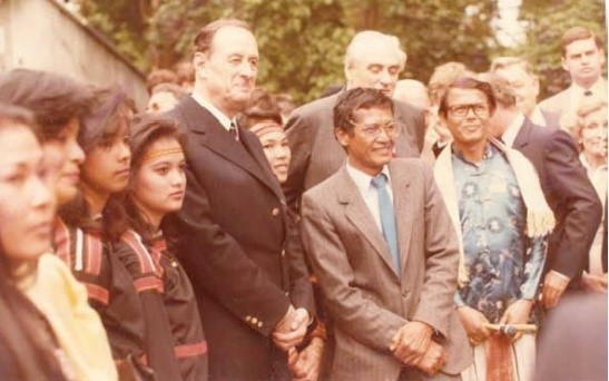 Hình 17. Po Dharma tổ chức buổi giới thiệu ca sĩ Chế Linh tại Bộ Ngoại Giao Pháp có sự hiện diện của Bộ Trưởng X. Deniau, năm 1984.