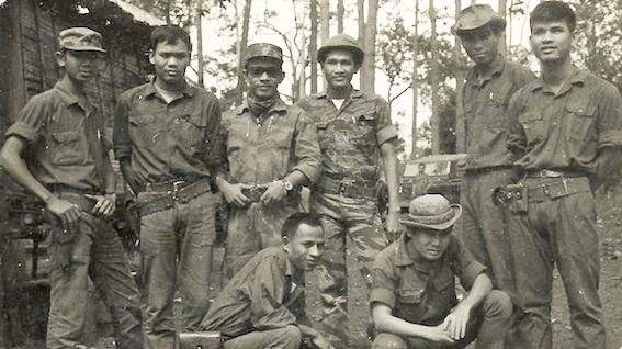 Hình 3. Tiểu đoàn 181 Fulro. Đại Úy Po Dharma (trái), Thiếu Tá Osman,vtiểu đoàn trưởng (chính giữa). Tất cả người trong hình đều tử trận trên chiến trường.
