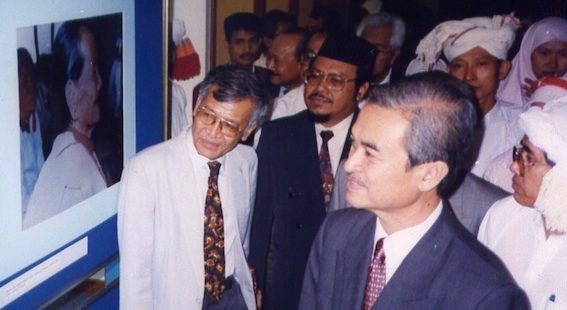 Hình 19. Po Dharma hướng dẫn Dato Abdullah Badawi (Bộ Trưởng Bộ Ngoại Giao Mã Lai) xem triễn lãm Champa vào năm 1996.