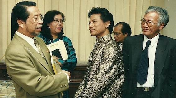 Hình 20. Khai mạc lễ giới thiệu CD của Chế Linh năm 2000, Po Dharma mời Hoàng Tử Mã Lai, Tengku Alaudin Majid (bên trái) đứng ra khai mạc chương trình.