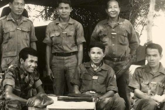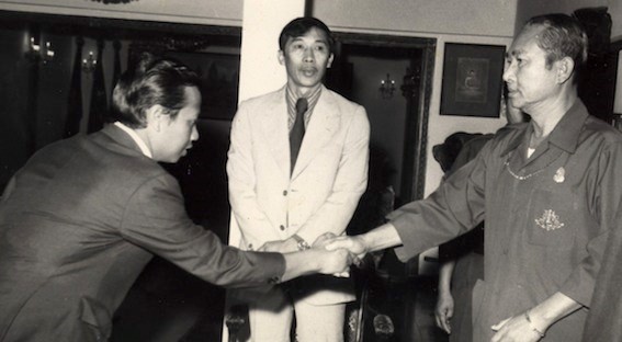 Hình 5. Thiếu Tướng Les Kosem (màu trắng) và Lon Nol, Tổng Thống Cộng Hòa Khmer (bên phải)