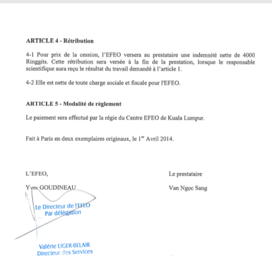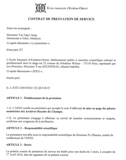 Bản hợp đồng làm dự án Ấn Triện - Champa giữa Putra Podam và EFEO, Link Hình 5.