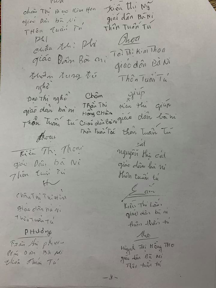 Một điều thật khôi hài là ông Thành Phần là kẻ chủ mưu, dám đến từng làng và gặp từng người để dụ dỗ những người nhẹ dạ, cả tin để ký tên vào đơn kiến nghị, nhưng chính ông Thành Phần không dám đứng tên trong bản kiến nghị mà đưa cho vợ là Nguyễn Thị Bi đứng ký tên thay mặt gia đình Thành Phần.