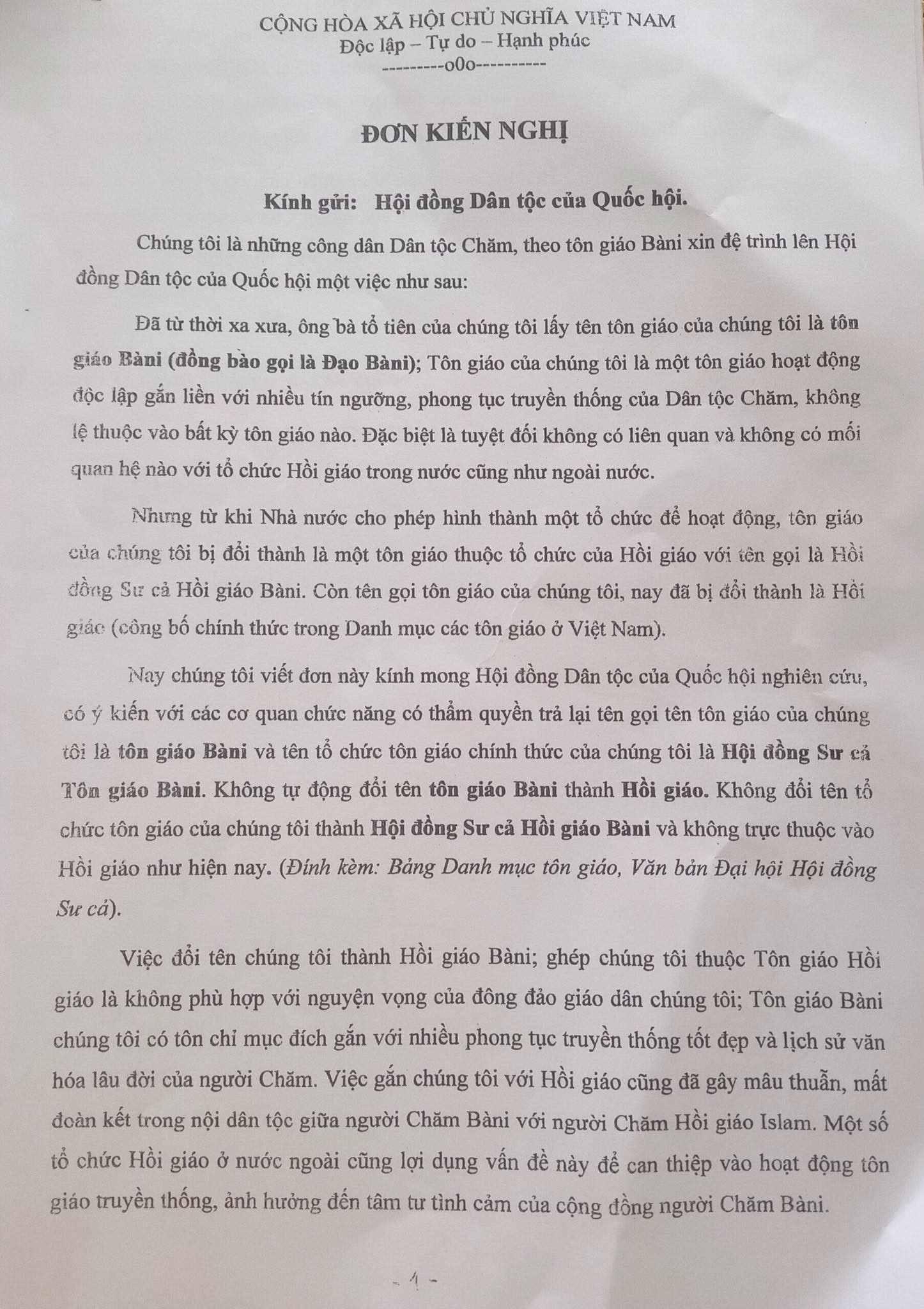 Các bạn, các tín đồ Bani hãy tin tưởng vào giáo sĩ Acar, Imam, Po Gru của chúng ta, hãy tin vào tổ chức Hội đồng Sư cả Hồi giáo Bani đã được chính phủ công nhận và chính thức có trong danh mục các tôn giáo ở Việt Nam.