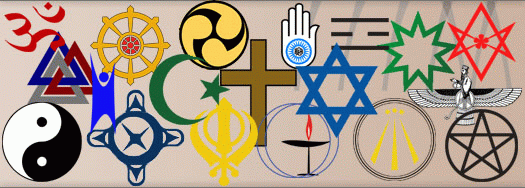 Hình 7. Biểu tượng một số tôn giáo đa thần (polytheism), độc thần (monotheism), và phiếm thần (pantheism).