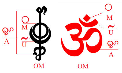 OM là biểu tượng thiêng liêng nhất, là nền văn minh của Ấn Độ giáo dùng để diễn đạt ý niệm trong triết lý Hindu với ý nghĩa bao hàm sự tôn kính và thiêng liêng cho ba vị thần quyền lực tối cao như Brahma, Vishnu, Shiva (Mahesh). OM là một biểu tượng như một âm tiết với ý nghĩa thượng đế là duy nhất (God is one), là thần chú của Hindu giáo. OM được đánh vần AUM, là tổng hợp từ 3 âm tiết là: A, U và M, là bản thể của Vedas là biểu thị của Ganesha, Swastika. Là ý nghĩa bao hàm tất cả mọi không gian, vạn vật và vũ trụ là nguồn gốc của mọi nguồn gốc, là hình dạng vật chất duy nhất của thần tối cao, Brahman. Trong thế giới con người, nếu như một đứa bé được sinh ra mà không phát được 3 âm tiết: A, U và M thì đứa bé đó coi như bị câm.