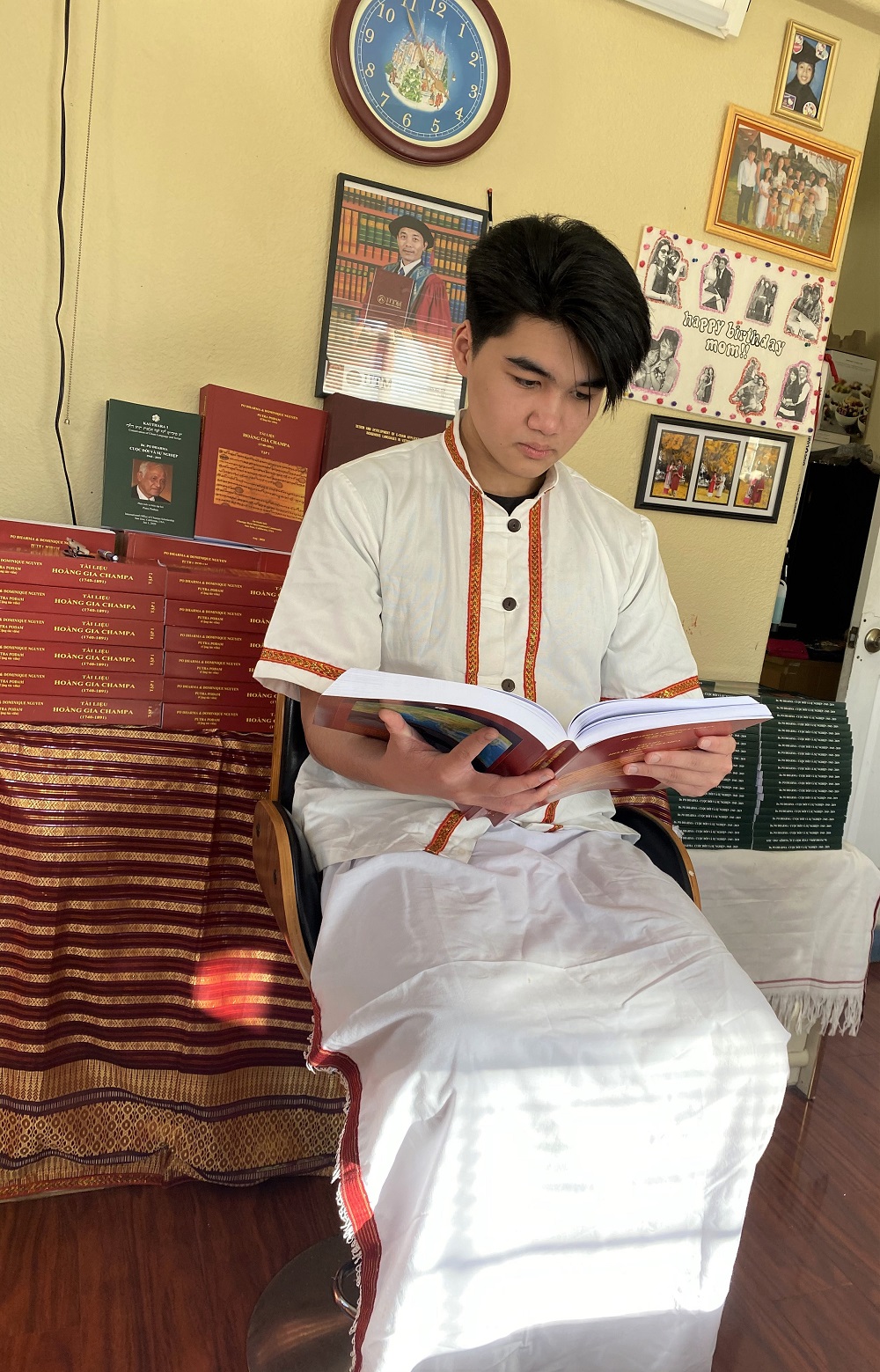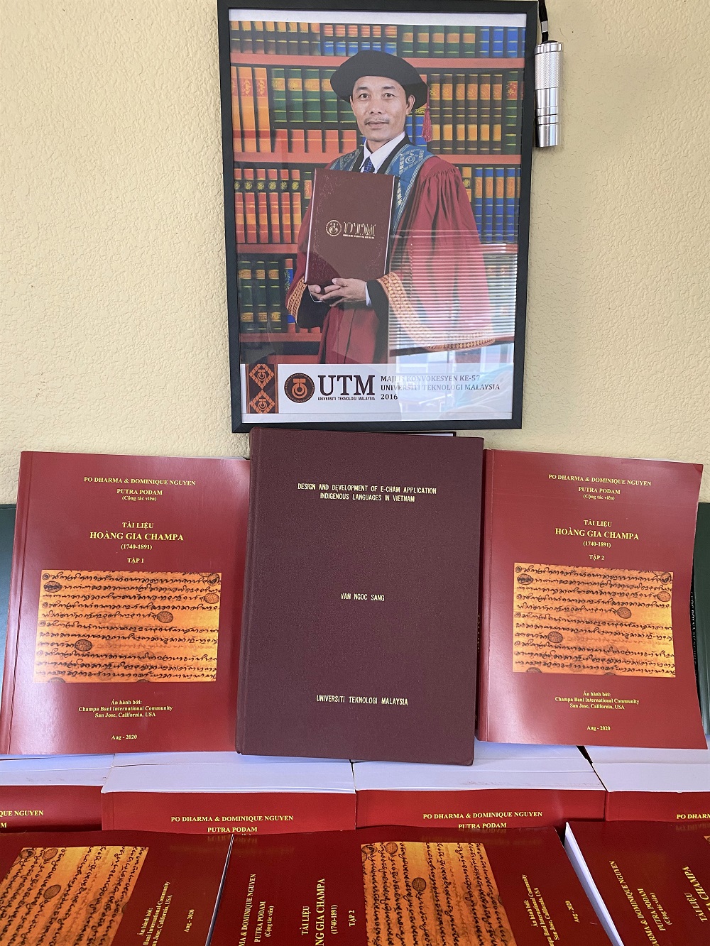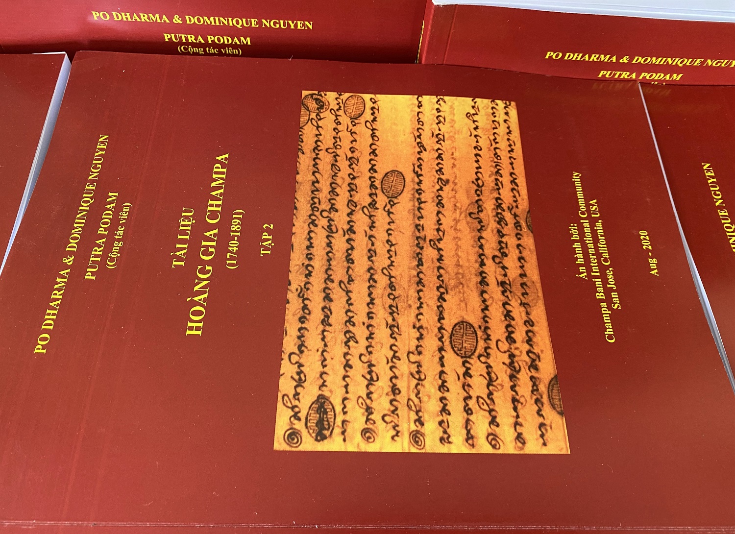 Hôm nay Putra Podam cũng xin giới thiệu cộng đồng Champa, sách “Tài liệu Hoàng gia Champa” đã hoàn thành và in ấn đợt 1 với số lượng 500 cuốn, gồm 5 tập, mỗi tập 100 cuốn, mỗi cuốn 1000 trang. Sách đã dâng lên Po Dharma dịp kỷ niệm hai năm thầy mất. Cuốn sách được xuất bản như một tri ân và tưởng nhớ đến công trạng của Pgs.Ts.Po Dharma.