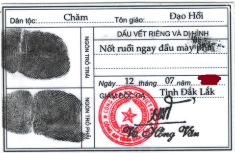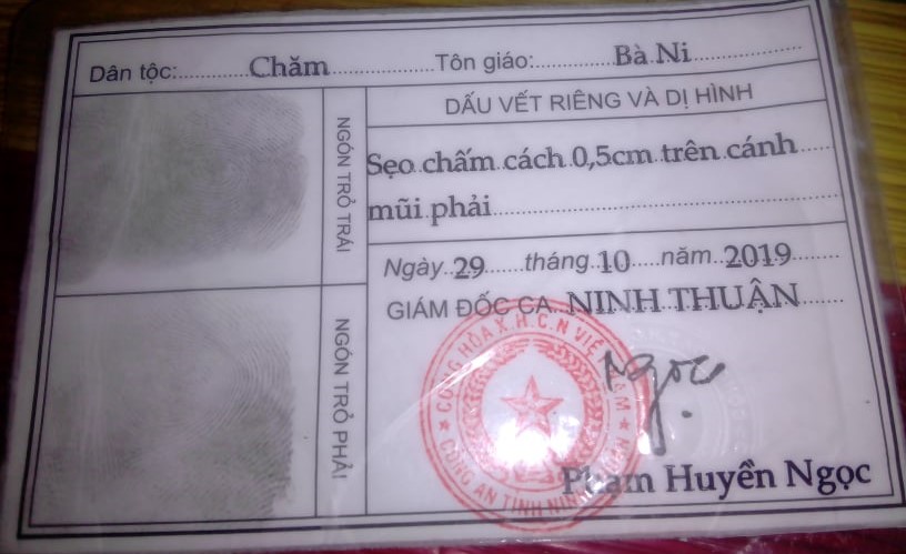 Hình 2. Năm 2016, Công an tỉnh Ninh Thuận cấp CMND với tôn giáo: HỒI GIÁO