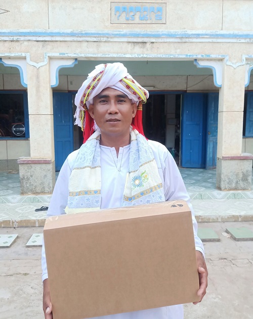 Hình 3. Lâm Văn Vũ (Hội Champa Bani Quốc tế) trao giải thưởng cho Acar. Hồng Xuân (Acar Cường).