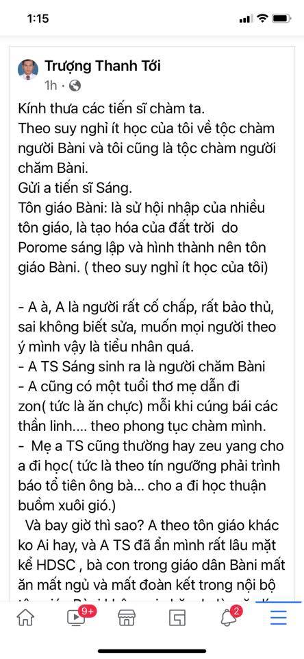 Hình trên đang bài viết của thầy Trượng Thanh Tới, chiến binh mới, chống HĐSC Hồi giáo Bani, chống Bộ Nội vụ, chống Bộ Công an và chống Ts. Putra Podam