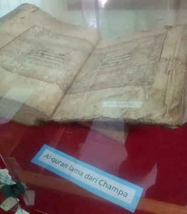Hình 3. Thiên kinh Koran chép tay của người Champa, được xác định vào thời kỳ đức vua Abdul Hamid Shah (Nik Mustapha - Po Rome). Quyển thiên kinh đang trưng bày tại bảo tàng thiên kinh Koran ở miền Nam Thái Lan.