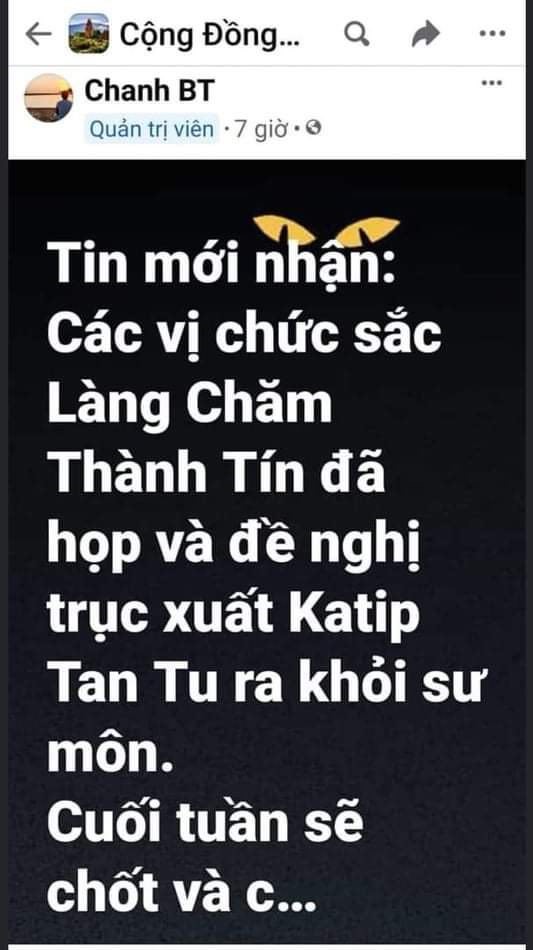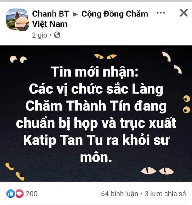 Phiên họp không có nội dung nào bàn đến việc phế truất Katip Từ Công Tấn ra khỏi chức sắc như thông tin của Thông Minh Chánh. Qua vụ việc này, chúng tôi có hỏi ý kiến Imam Từ Công Dư, Phó chủ tịch thường trực Hội đồng Sư cả Hồi giáo Bani Ninh Thuận cho biết: … tôi chưa nghe thông tin gì từ Ban bổn đạo Thánh đường Hồi giáo Bani Thành Tín, chắc đây chỉ là thông tin nhảm nhí, bịa đặt nhằm làm tổn thương đến danh dự giáo sĩ Chăm Bani.
