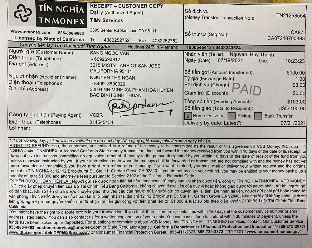 4. Thành Ngọc Cò (Cei Có), USA: 100 US
