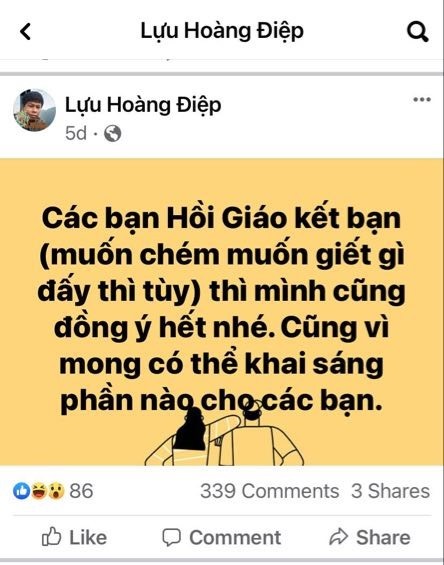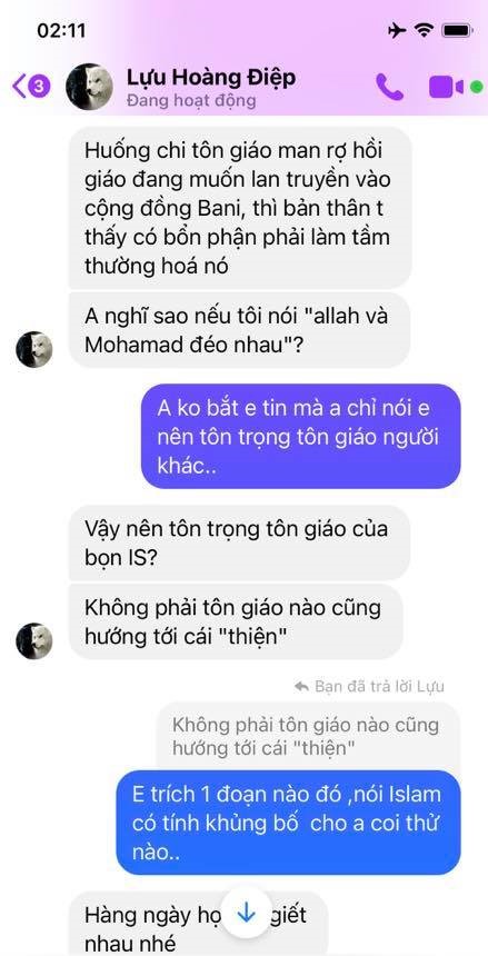 Hình 5. Lựu Hoàng Điệp, chửi xúc phạm Thiên sứ Muhammad