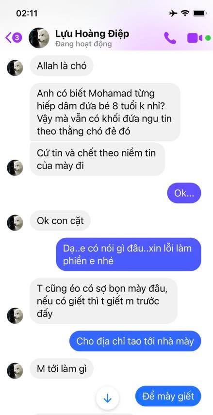Hình 7. Lựu Hoàng Điệp, chửi xúc phạm Thiên sứ Muhammad