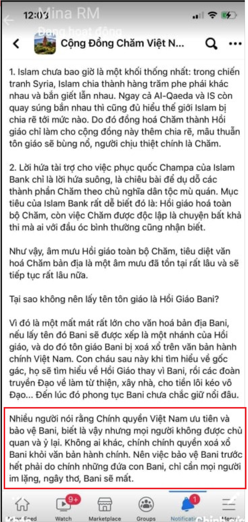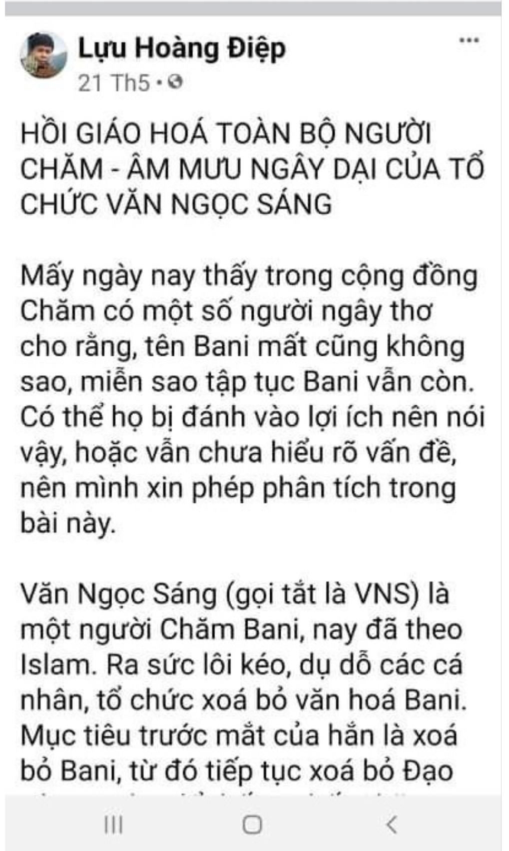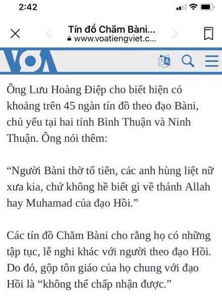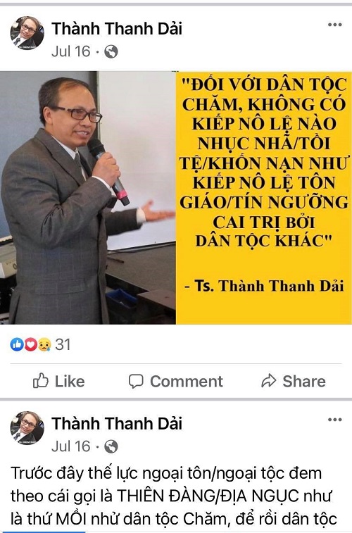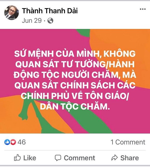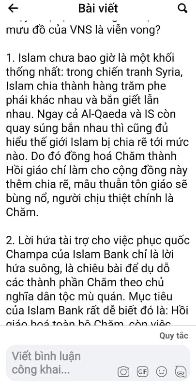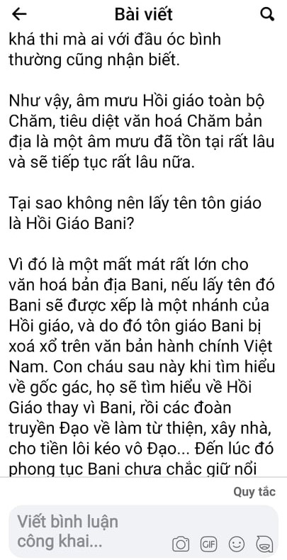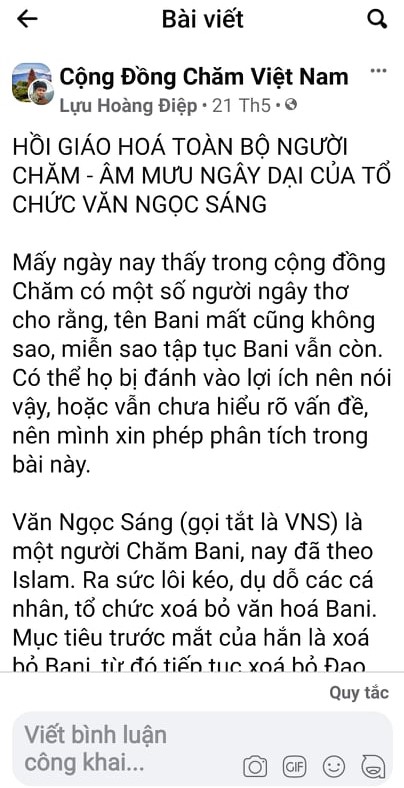Bài đăng trên Page Cộng Đồng Chăm Việt Nam