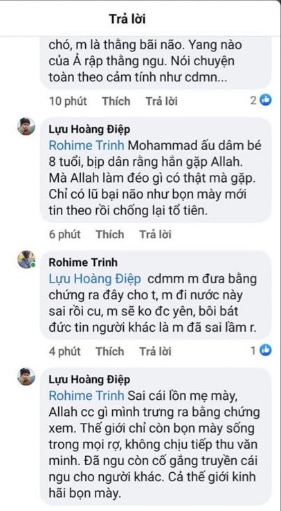 Hình 9. Lựu Hoàng Điệp, chửi xúc phạm Thiên sứ Muhammad