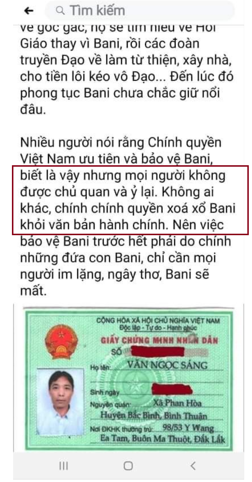 Hình 25. Nhóm phản động Thành Phần, Thành Đài và học trò vu khống Chính phủ VN xóa tôn giáo người Chăm