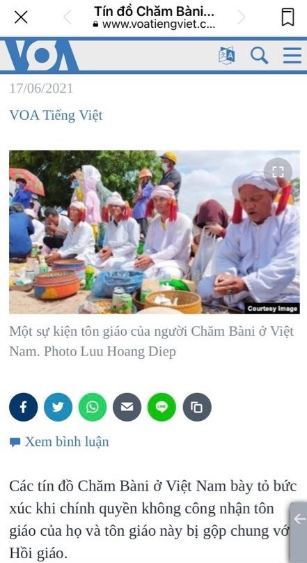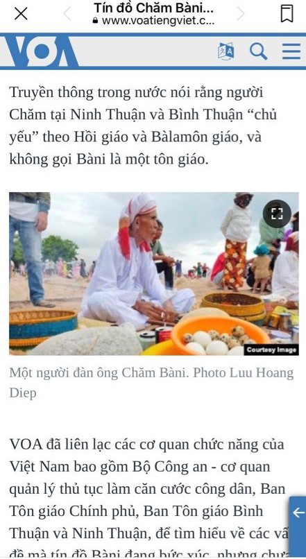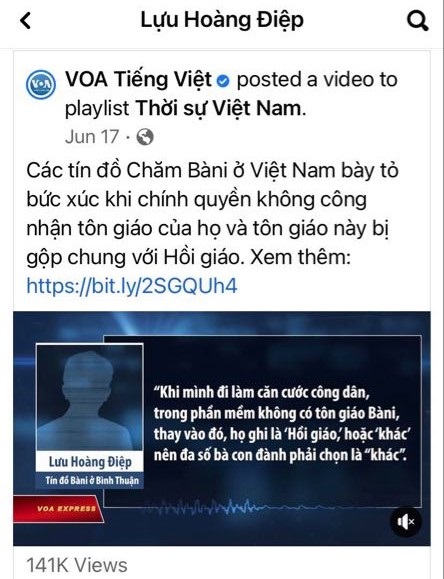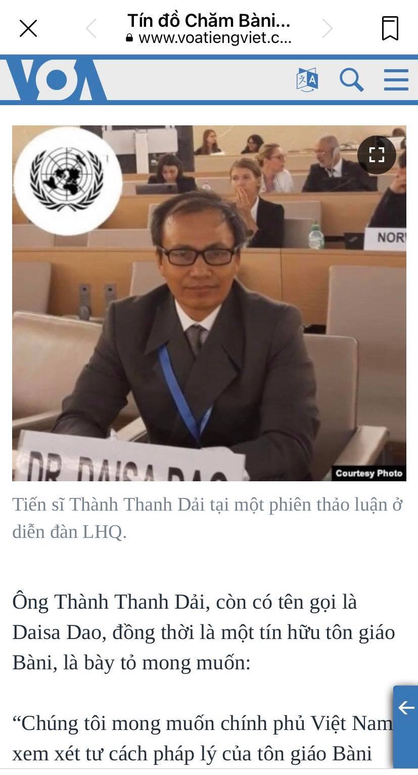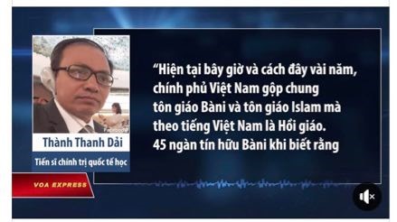 Hình 30. Thành Thanh Dải, vu khống Chính phủ VN xóa tôn giáo Chăm cho Đài VOA