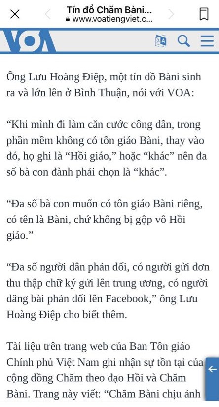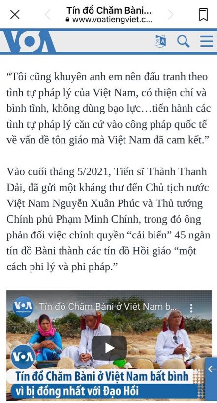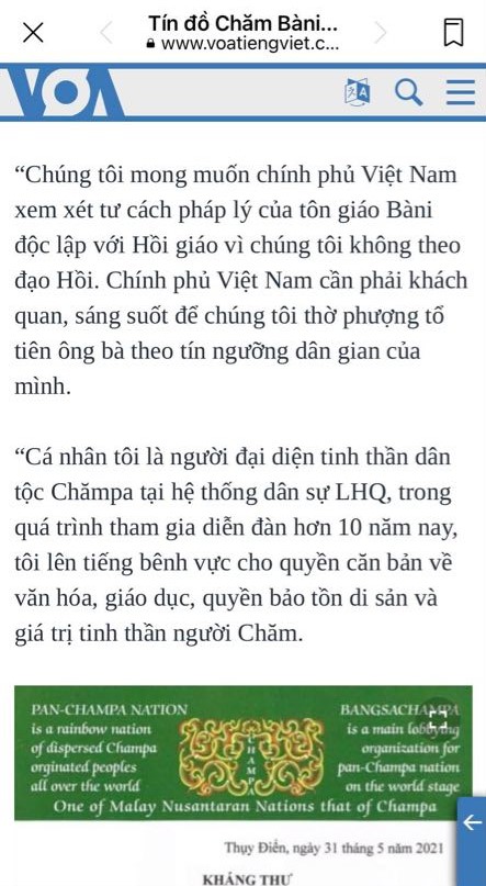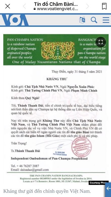 Hình 33. Thành Thanh Dải, Lựu Hoàng Điệp tố cáo VN xóa tôn giáo Bani thay Hồi giáo