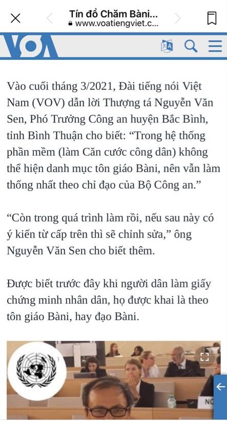 Hình 32. Lựu Hoàng Điệp tố cáo chính phủ VN xóa tôn giáo Bani cho Đài VOA