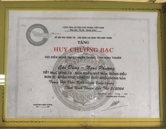 Hình 2. Huy chương bạc tại Hội diễn nghệ thuật quần chúng tỉnh Ninh Thuận.