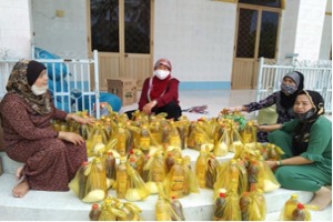 Hình 1. Chị em phụ nữ chuẩn bị quà tại Thánh đường Hồi giáo Islam 102 Phước Nhơn.