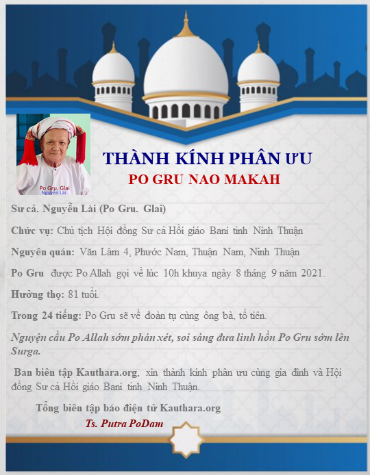 Ban biên tập Kauthara.org, xin thành kính phân ưu cùng gia đình và Hội đồng Sư cả Hồi giáo Bani tỉnh Ninh Thuận.