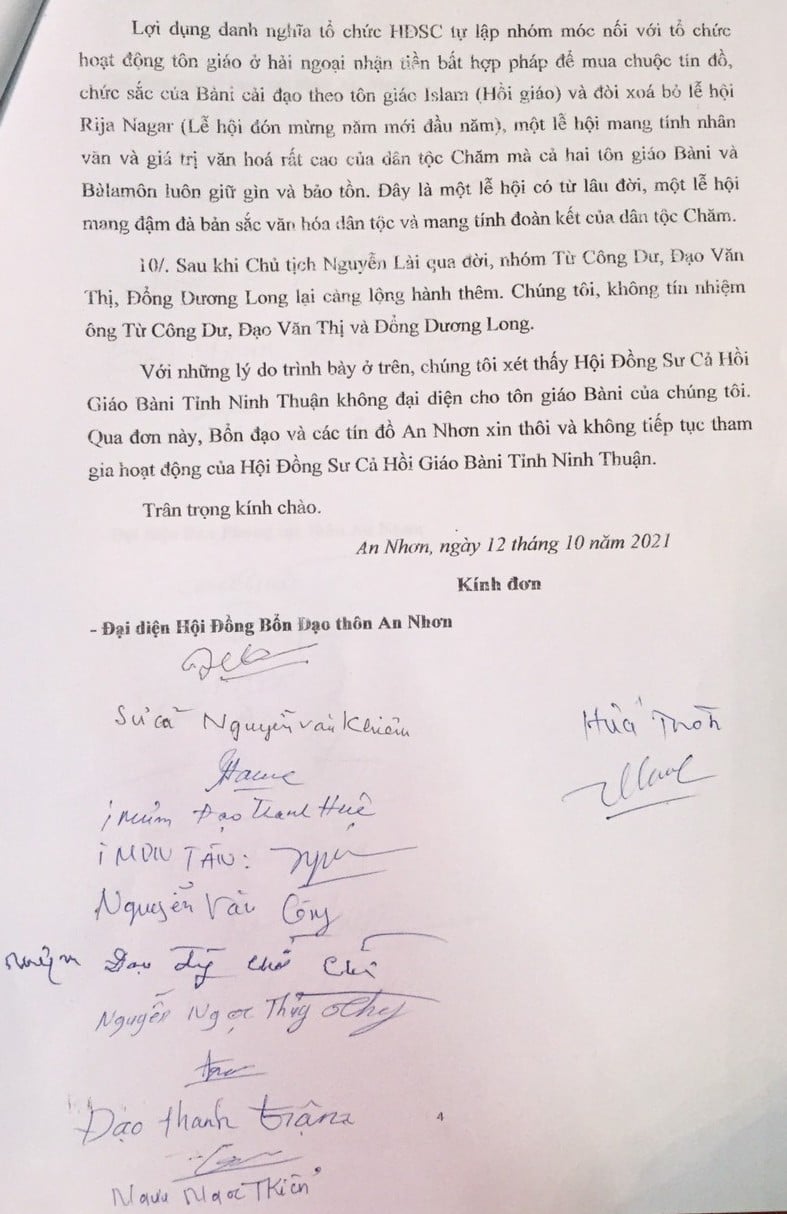 Hình 9. Đơn xin thôi tham gia HĐSC của bổn đạo An Nhơn (trang 4).