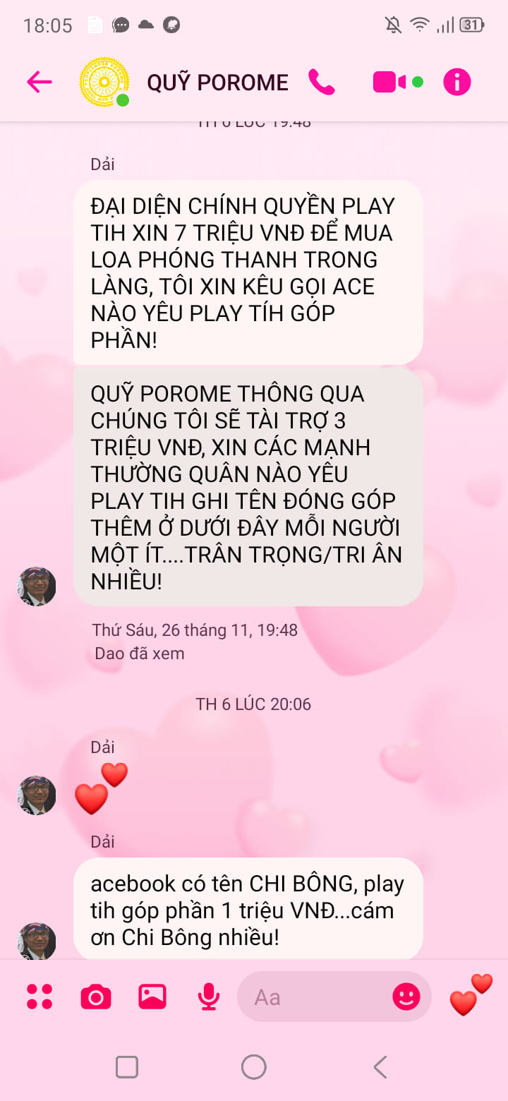 Hình 3. Thành Thanh Dải thông báo cho cả thế giới biết, chính quyền Play Tih - Ninh Thuận liên hệ xin tiền Quỹ POROME của thủ tướng Thành Thanh Dải - tự xưng).