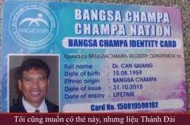 Hình 6. Căn cước Thành Thanh Dải cấp cho Ts. Quảng Đại Cẩn (Căn cước Bấng Champa do Thủ tướng Thành Thanh Dải cấp).
