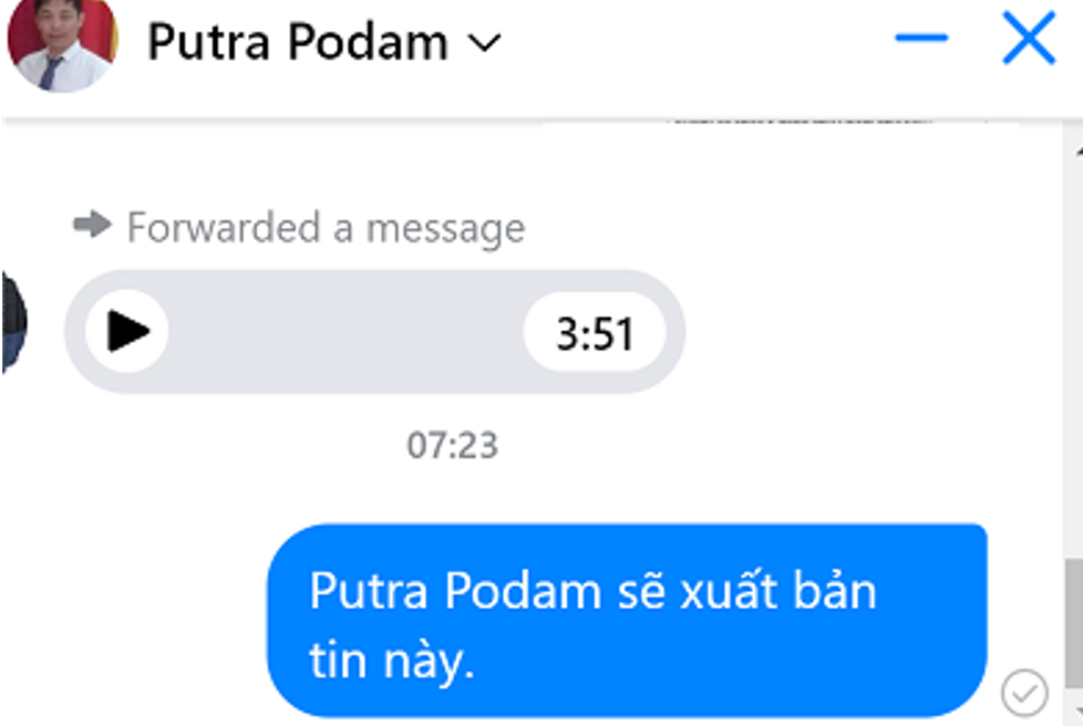 Hình 3. Cán bộ Lưu Văn Đức lộ bí mật Chính phủ trong đoạn ghi âm kích động nhóm phản động chống Ban Tôn giáo Chính phủ. (Đoạn ghi âm do Facebook khác gửi Putra Podam).