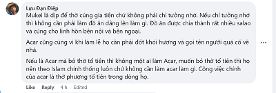 Hình 1. Bình luận của Facebook: Lựu Đạn Điện trong bài viết, "Lễ báo phước gia tiên (Harei Muk Kei)".