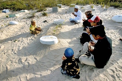 Hình 8. Chăm Bani Islam (Islam) tảo mộ, đọc Thiên kinh Koran.