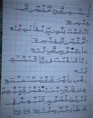 Hình 3. Chữ Thrah Chăm thường viết kèm để giải thích nội dung trong đoạn Thiên kinh Koran
