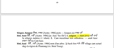 Hình 3. Tự điển Aymonier - Cabaton (1906). Định nghĩa: Bani = Islam = Hồi giáo như: Bani Ibrahim, Bani Nabi, Bani Muhammad.