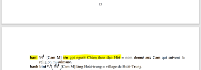 4). Bani: Tự điển Gerard Moussay (1971), định nghĩa: Bani là người Chàm theo đạo Hồi giáo.