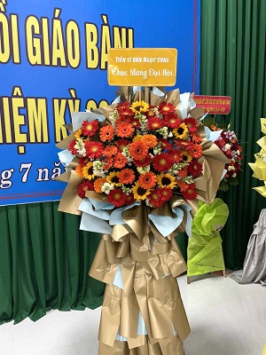 Hình 6. Tiến sĩ Văn Ngọc Sáng Tổng biên tập Tập san Kauthara.org, đã gởi lẵng hoa chúc mừng Đại hội.