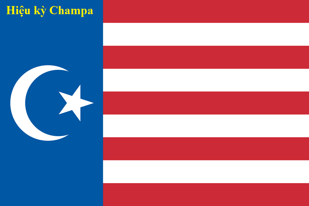Hiệu kỳ Champa (tiếng Chăm: Dok Champa), gồm 9 sọc đỏ và trắng xen kẽ nhau nằm ngang đại diện cho tư cách bình đẳng và bên trái có một hình chữ nhật màu trắng xanh mang trăng lưỡi liềm (Aia Bulan) và ngôi sao 5 cánh (Batuk). Ngôi sao 5 cánh đại diện cho sự thống nhất giữa các tiểu bang như Indrapura, Amaravati, Vijaya, Kauthara và Panduranga. Lưỡi liềm đại diện cho Hồi giáo là quốc giáo của Champa; nền xanh da trời tượng trưng cho sự thống nhất của nhân dân Champa; ngôi sao và lưỡi liềm trước đó màu vàng là màu hoàng gia Champa, nhưng nay Champa không còn vua nên đổi thành màu trắng (Quốc gia Hồi giáo không còn vương).
