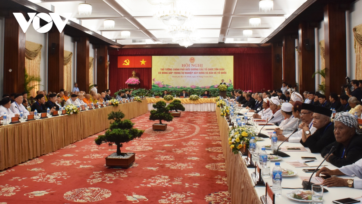 (Chinhphu.,vn) - Ngày 30/8, Hội nghị Thủ tướng Chính phủ biểu dương các tổ chức tôn giáo có đóng góp trong sự nghiệp xây dựng và bảo vệ Tổ quốc được tổ chức tại Hội trường Thống Nhất, TPHCM.