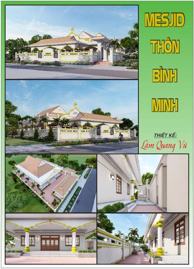 Hình 12. Thiết kế Thánh đường (Mesjid) Bình Minh do kỹ sư: Lâm Quang Vũ, đã được Chính quyền và Bổn đạo thôn Bình Minh công bố và treo các nơi công cộng trong làng.