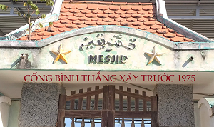 Hình 1. Cổng Thánh đường (Mesjid) Bình Thắng, cổng xây từ năm 1971 (trên cổng ghi chữ Ả Rập, Mesjid và hình Ngôi sao). Năm 2022, cổng này bị nhóm tà đạo đập và cho xây mới để xóa vết tích: Chữ Ả Rập, chữ: Mesjid, và hình Ngôi sao).