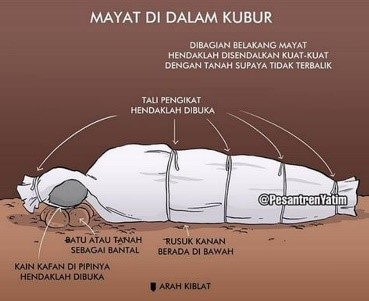 Hình 8, 9. Thi thể được chôn đầu hướng Bắc, chân hướng Nam, tử thi nằm nghiêng bên tay phải, mặt và ngực quay về hướng mặt trời lặn (Makkah).