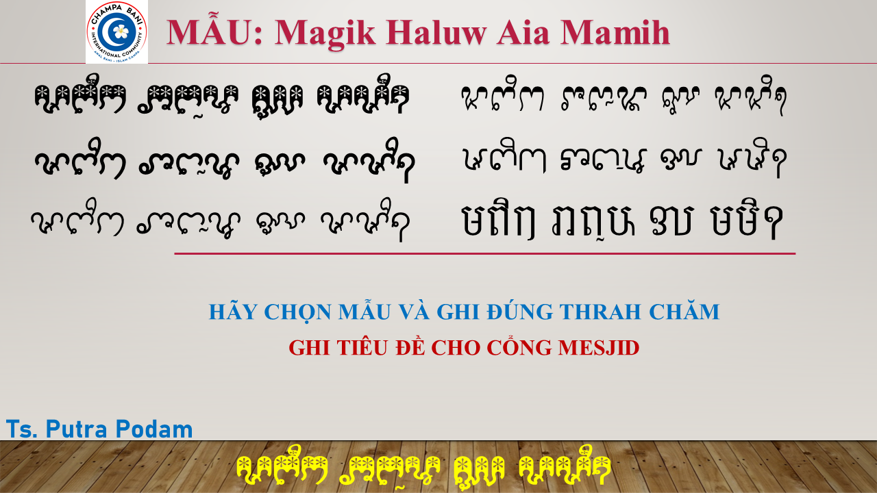 Hình 5. Mẫu chữ: " Magik Haluw Aia Mimah" dành cho thánh đường Bình Minh.
