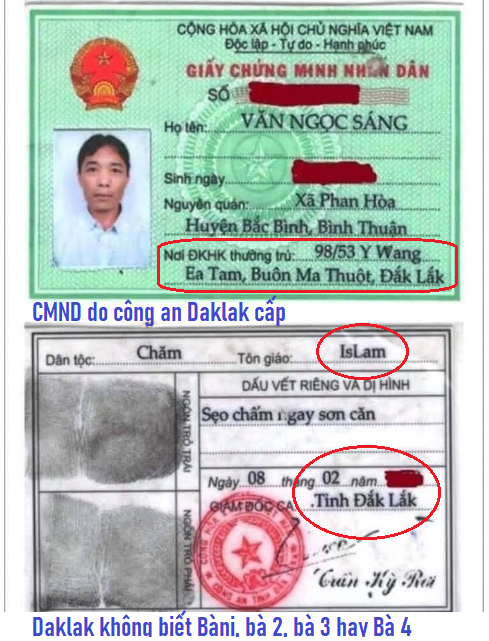 Hội đồng Sư cả Hồi giáo Bani, Sở Nội vụ nói hoạt động theo đúng pháp luật, nhưng uy tín danh dự của họ sẽ ra sao? Khi các anh cố tình từ chối trách nhiệm không lí giải cho cộng đồng Chàm hiểu lí do gì? Tại sao CMND và CCCD viết khác nhau?