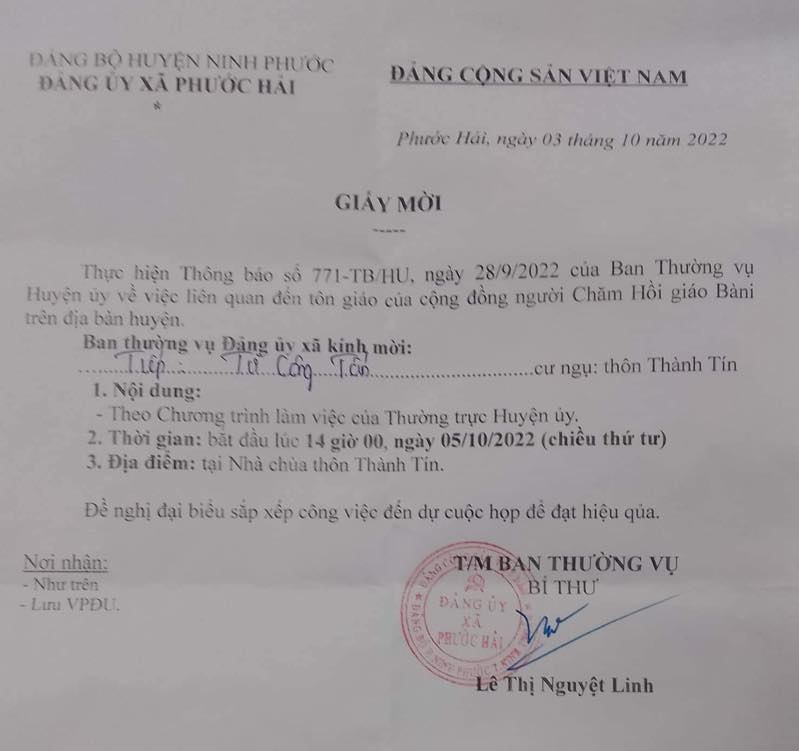 Nếu UBND (Ủy ban nhân dân) tỉnh làm sai ở đâu thì nên có công văn nói rõ cho cộng đồng Chàm hiểu một cách thuyết phục, còn các đồng chí công an thuộc an ninh tôn giáo các anh nên có ý kiến với chủ tịch UBND tỉnh, Sở Nội vụ tham mưu làm rõ.