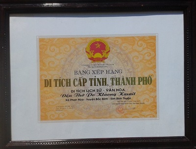 Hình 10. Bảng xếp hạng di tích cấp tỉnh cho đền Po Klaong Kasait, tọa lạc tại khu vực Aia Mamih xưa.