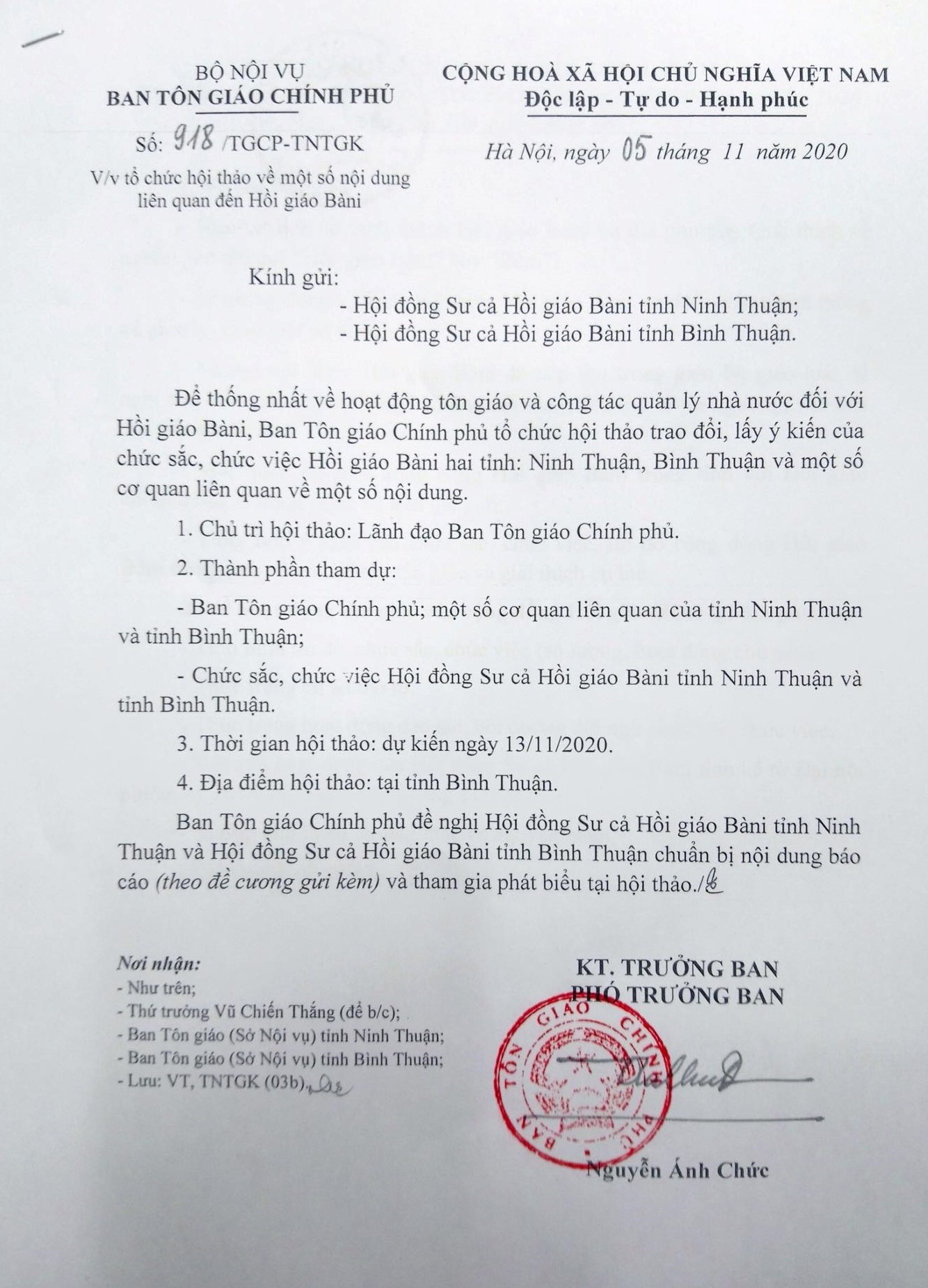 2. Thư kiến nghị: Giải pháp giải quyết vấn đề tôn giáo ở người Chăm